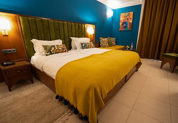 L'hôtel dispose de 156 chambres élégamment aménagées, y compris des options familiales, non-fumeurs et accessibles aux personnes handicapées. Chaque chambre est climatisée et équipée d'un coffre-fort, d'un minibar, d'une télévision satellite et d'un téléphone direct. Profitez de votre balcon ou terrasse pour savourer les rayons du soleil, l'air frais, et les délicieuses senteurs de jasmin et de roses.