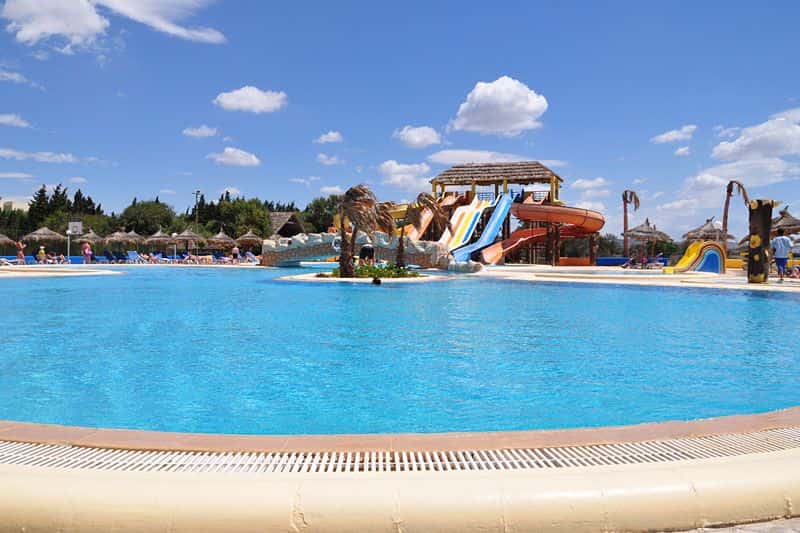 Complexe Aquatique : Un Aquapark dynamique, des piscines extérieures et une piscine couverte.
