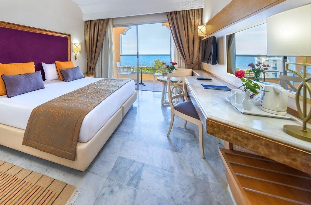 l’Hôtel Marhaba Palace vous invite à vivre une expérience unique entre raffinement, détente et authenticité. Idéalement implanté au bord de la mer, dans la prestigieuse station balnéaire de Port El Kantaoui, cet établissement quatre étoiles supérieur offre un cadre idyllique, à seulement quelques pas du célèbre Golf El Kantaoui, véritable paradis pour les amateurs de green et de tranquillité.