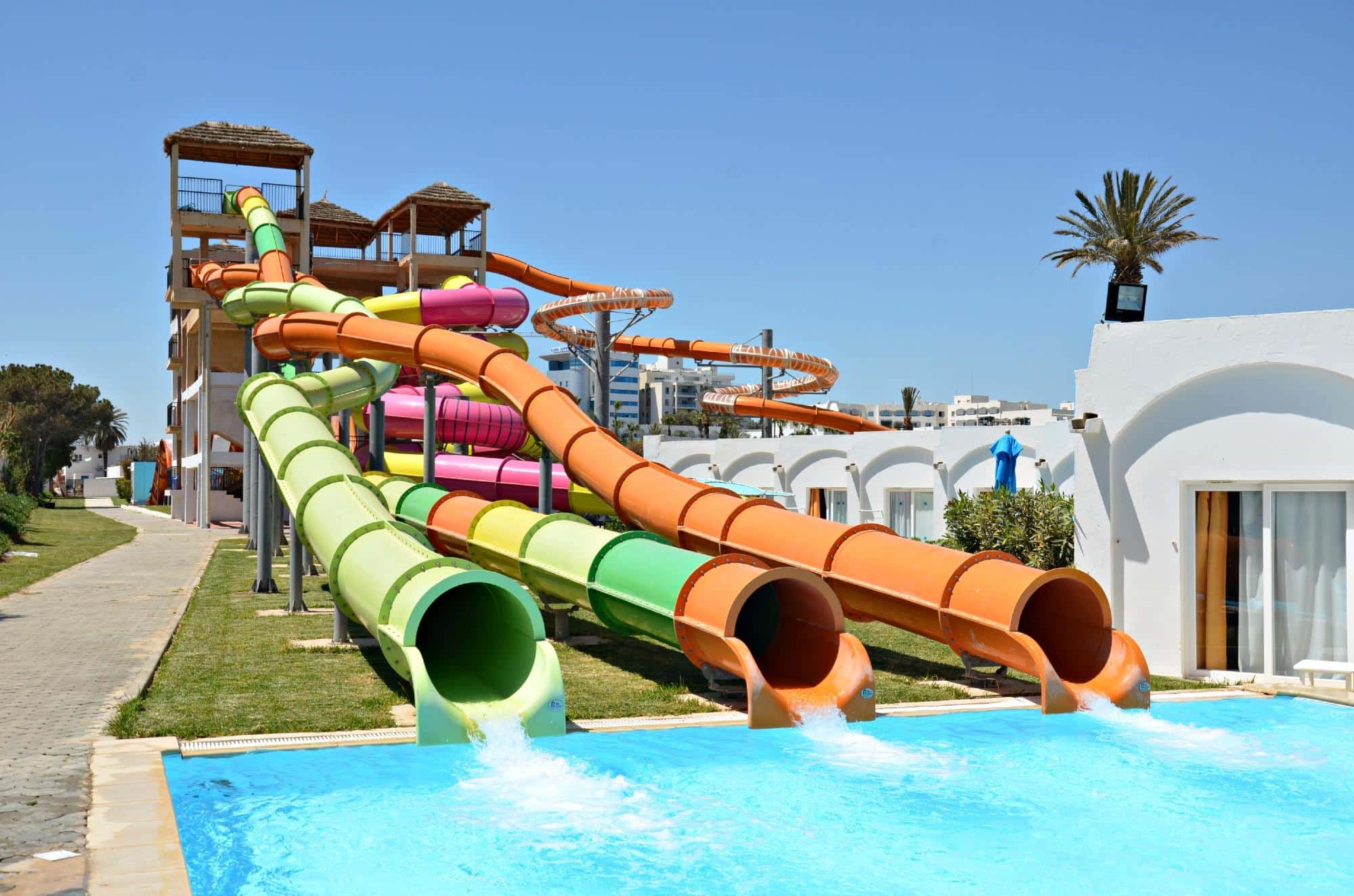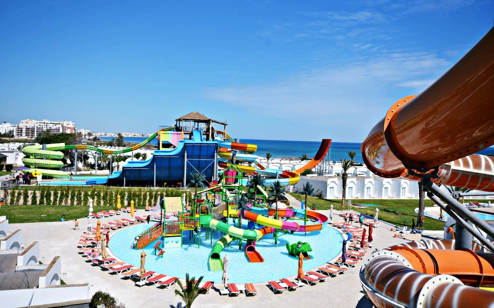 • Aquapark avec toboggans géants, rivières à courant et jeux d’eau pour adultes et enfants